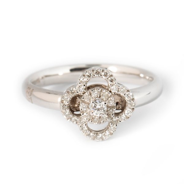 Anello fantasia in oro bianco con diamanti certificati, taglio brillante, realizzato artigianalmente dalla ditta Davite & Delucchi di Valenza.