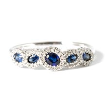 Anello donna in oro bianco, modello fantasia, con zaffiri e diamanti certificati, realizzato artigianalmente dalla ditta Davite & Delucchi di Valenza.