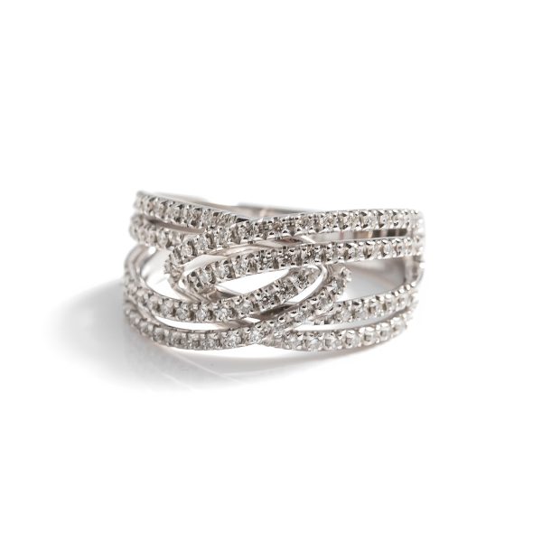 Anello donna, modello a fascia, in oro bianco e diamanti certificati realizzato artigianalmente dalla ditta Mirco Visconti di Valenza.