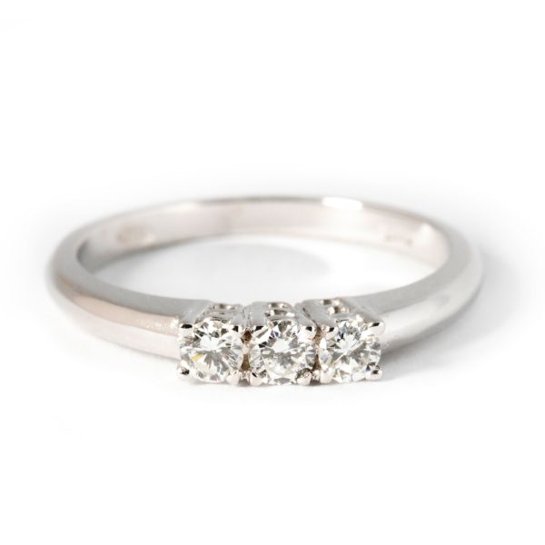 Anello donna, modello trilogy, in oro bianco e diamanti certificati, realizzato artigianalmente da Scarnera Gioielli.
