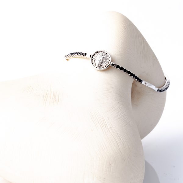 Bracciale Uomo in oro Bianco 18 kt con maglie rigide alternate a piastrine con incastonati zirconi neri.