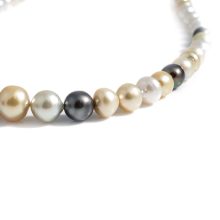 Filo di Perle Australiane Multicolore a gradazione, da mm. 9 a mm. 15. Di ottima coltivazione, il filo è lungo cm 40, e con una spesa di 300 euro in più si possono infilare con nodino, con una chiusura in oro bianco o giallo a scelta.