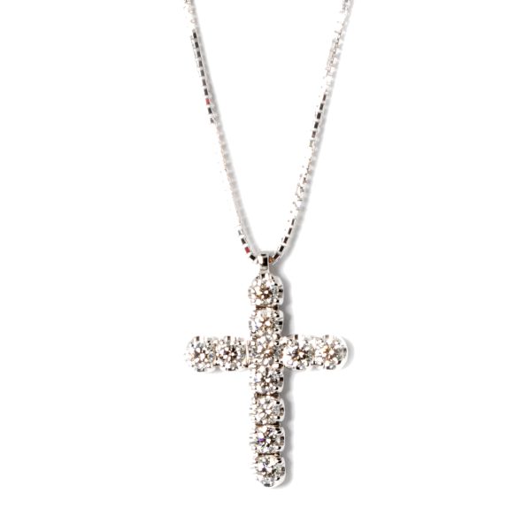 Catenina in oro bianco con croce stilizzata con diamanti certificati, realizzata artigianalmente dalla ditta Mirco Visconti di Valenza.