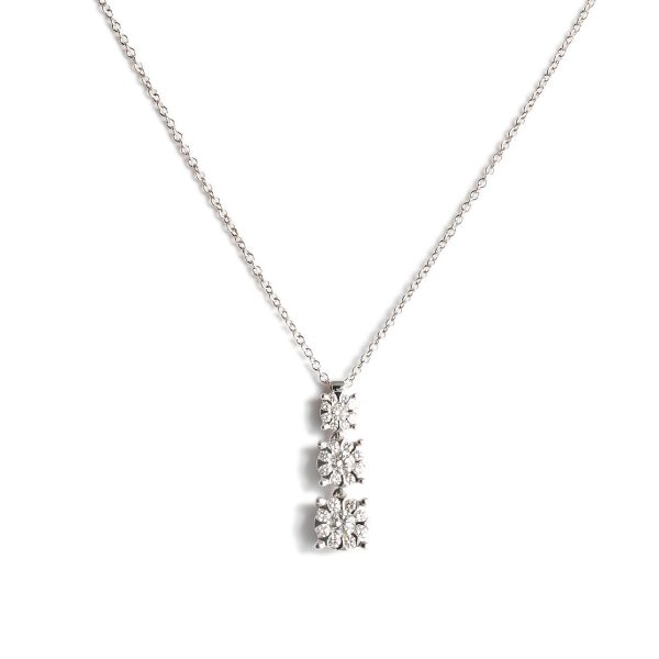 Catenina in oro bianco con trilogy di diamanti pendenti a gradazione, realizzato artigianalmente dalla ditta Mirco Visconti di Valenza.